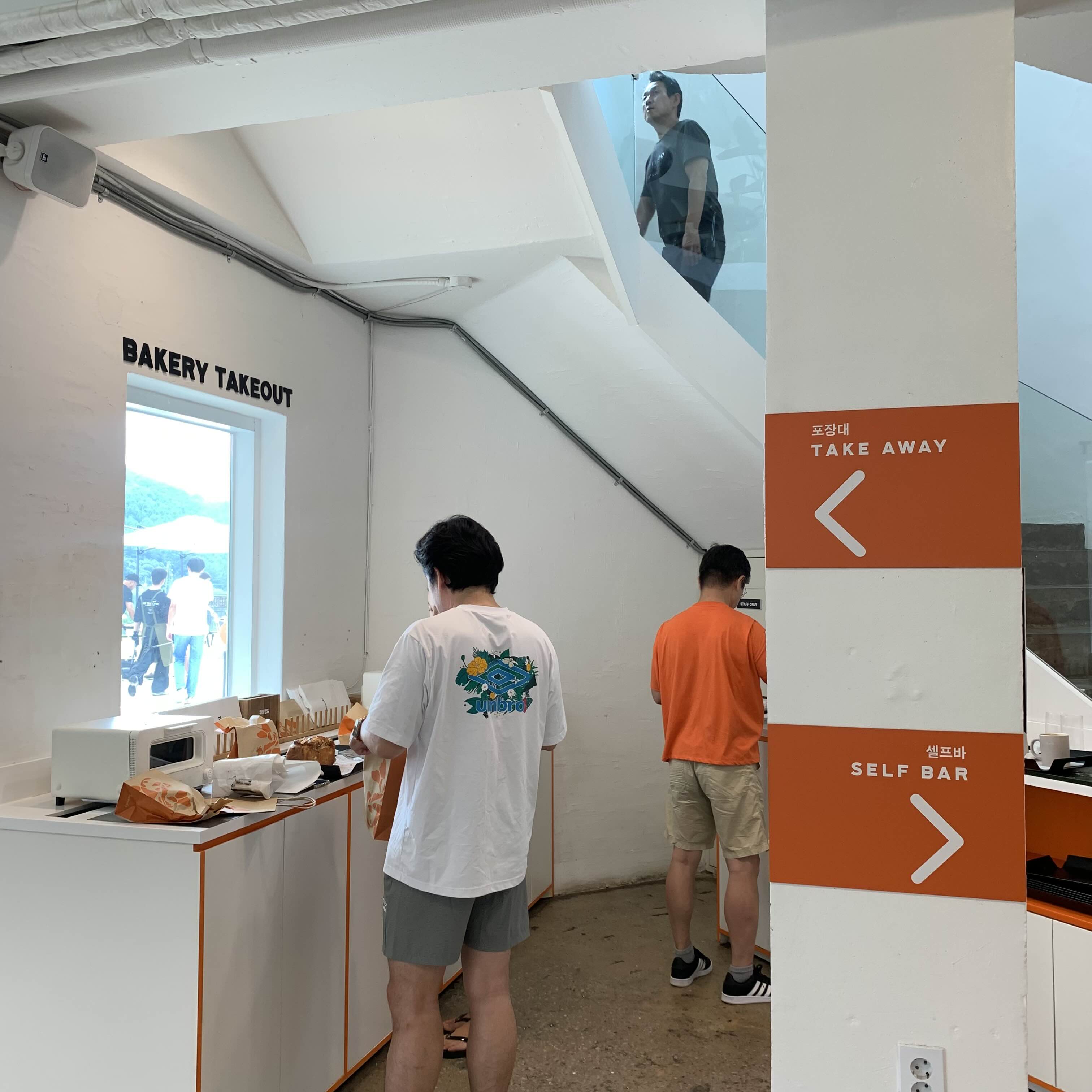 빵과 음료를 계산 후 픽업대에서 음료와 빵을 받을 수 있는데
