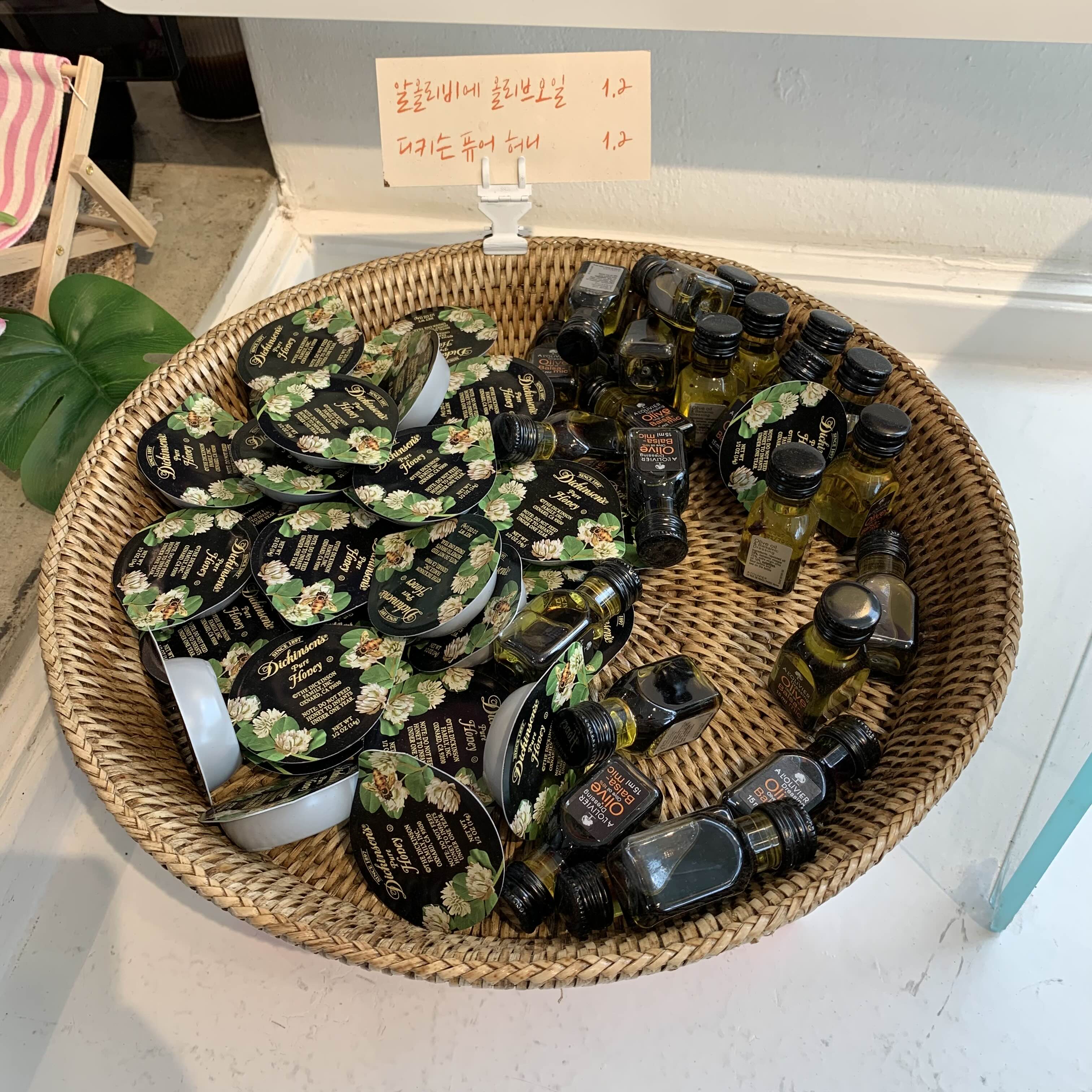 빵과 같이 곁들 일수 있는 올리브와 꿀도 너무 귀여운 병에 팔고 있었다.