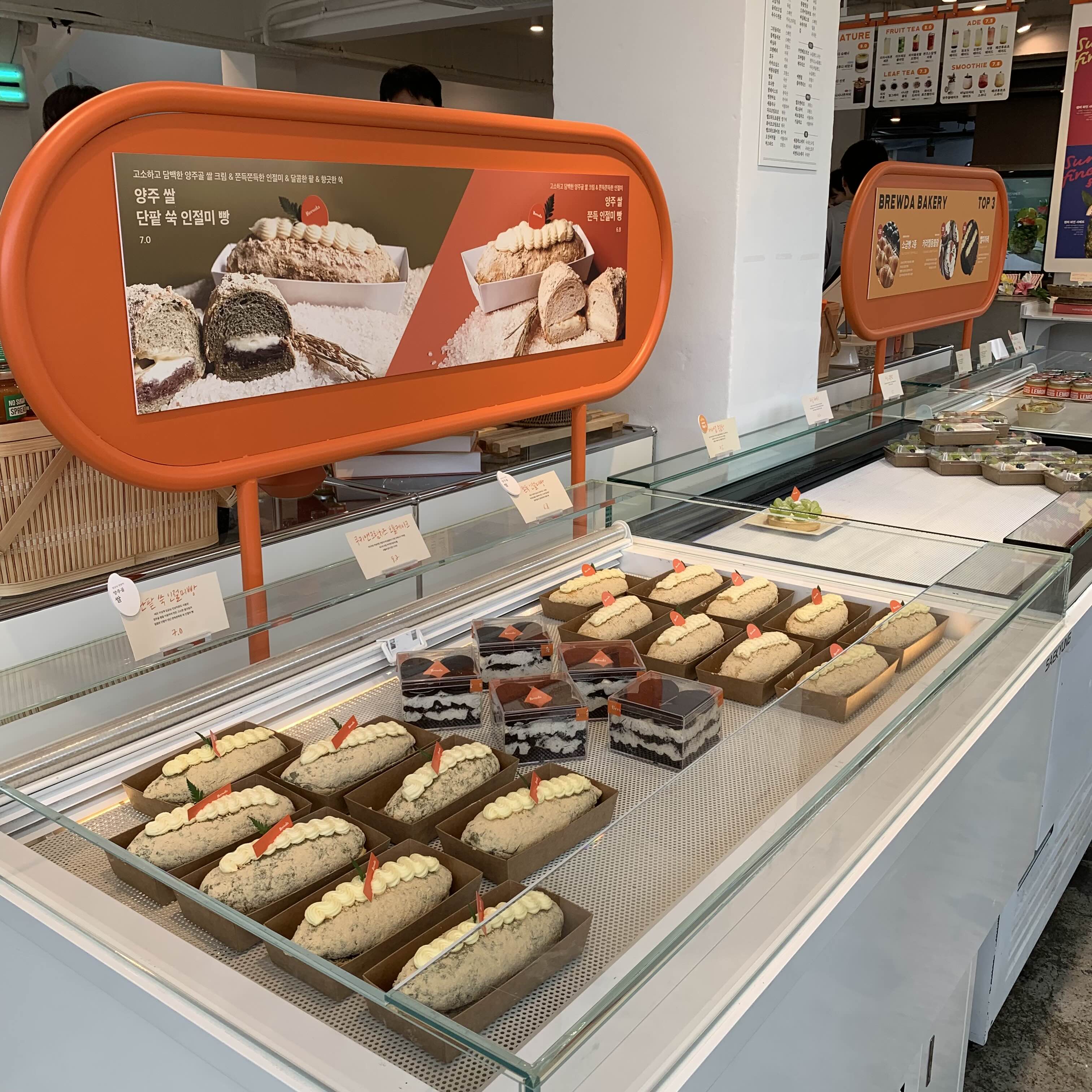 메인컬러 주황색을 적절히 써서 상품들이 돋보이는 디스플레이가 되어있었다.