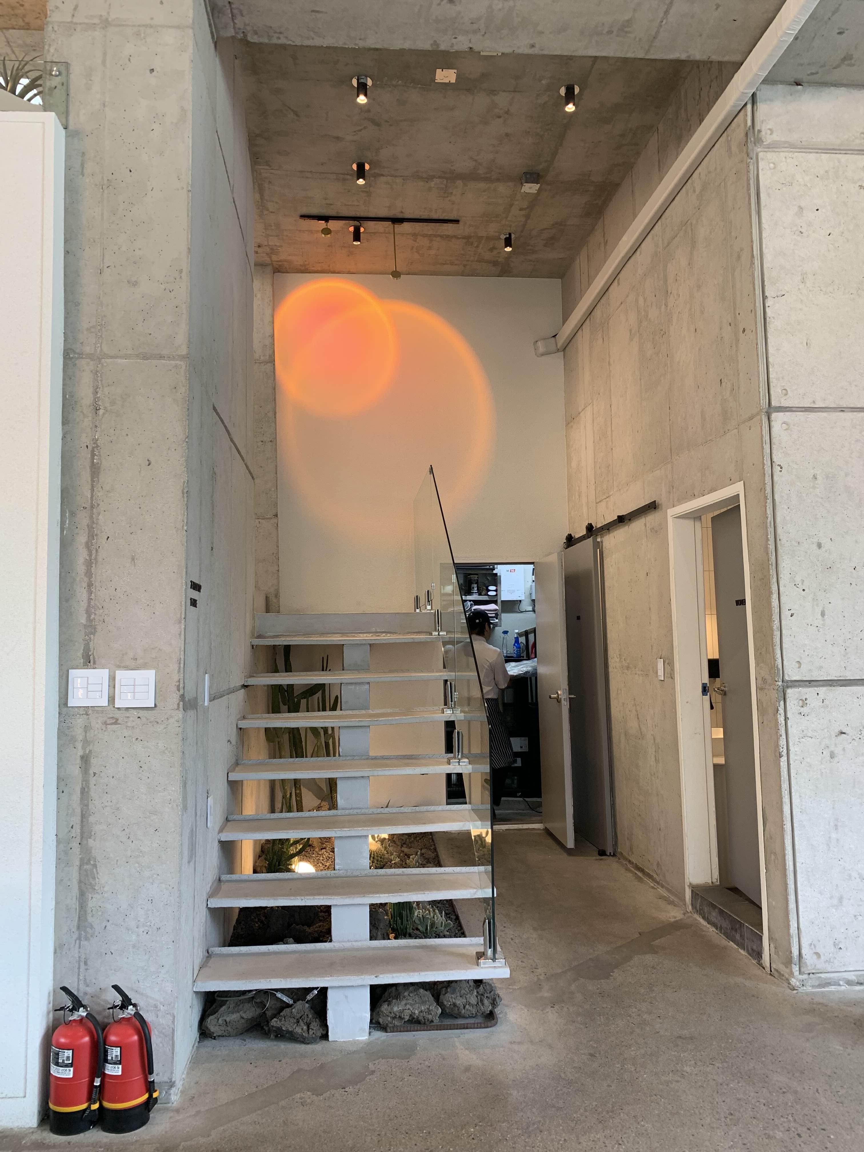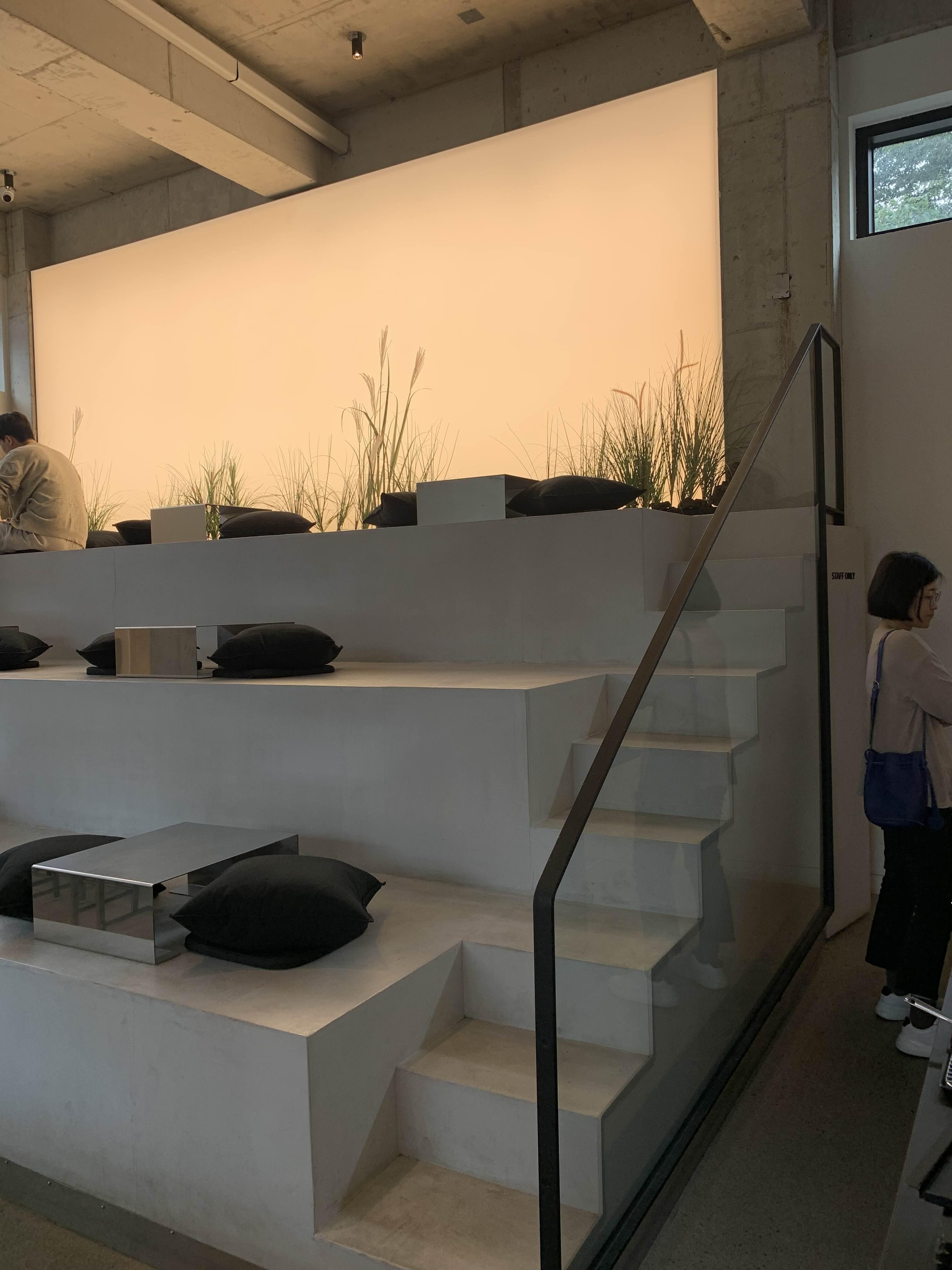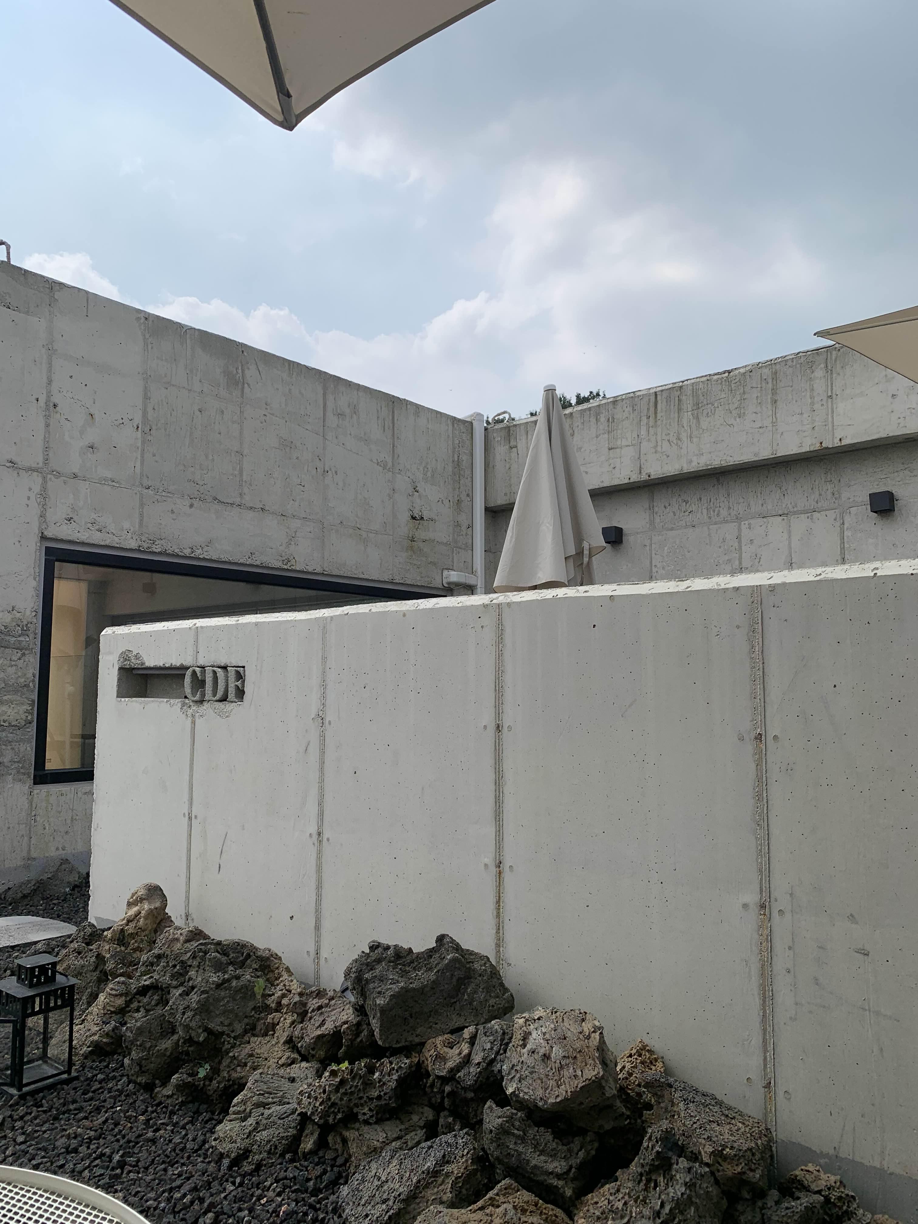 문을 중심으로 양옆에 돌과 식물들이 배치되어있었다.삭막한느낌이 들지않게 노출콘크리트와의 조화가 좋았다.