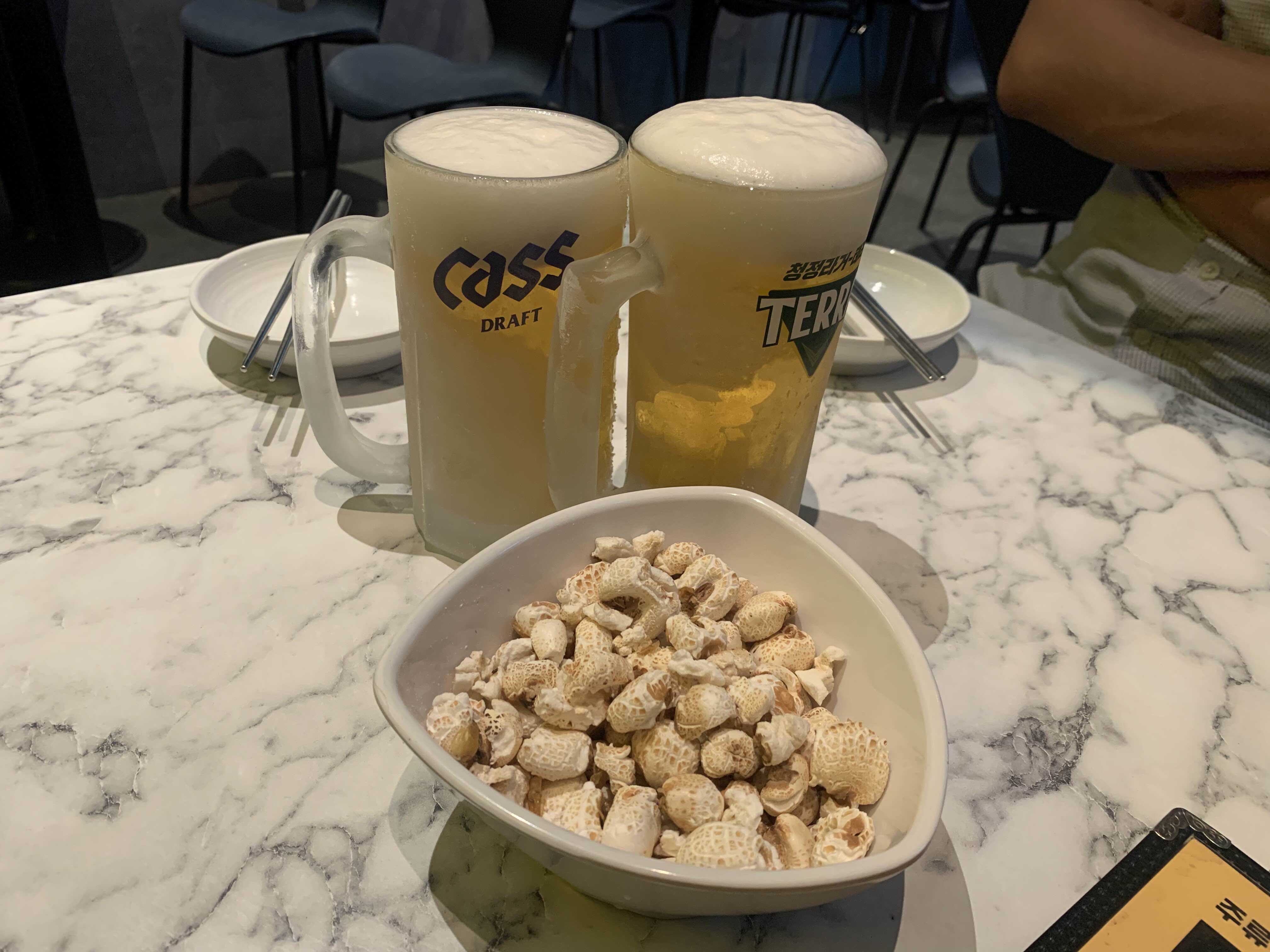 임산부인 나는 얼음물을 마시고, 두분은 크림 생맥주를 시켰다.