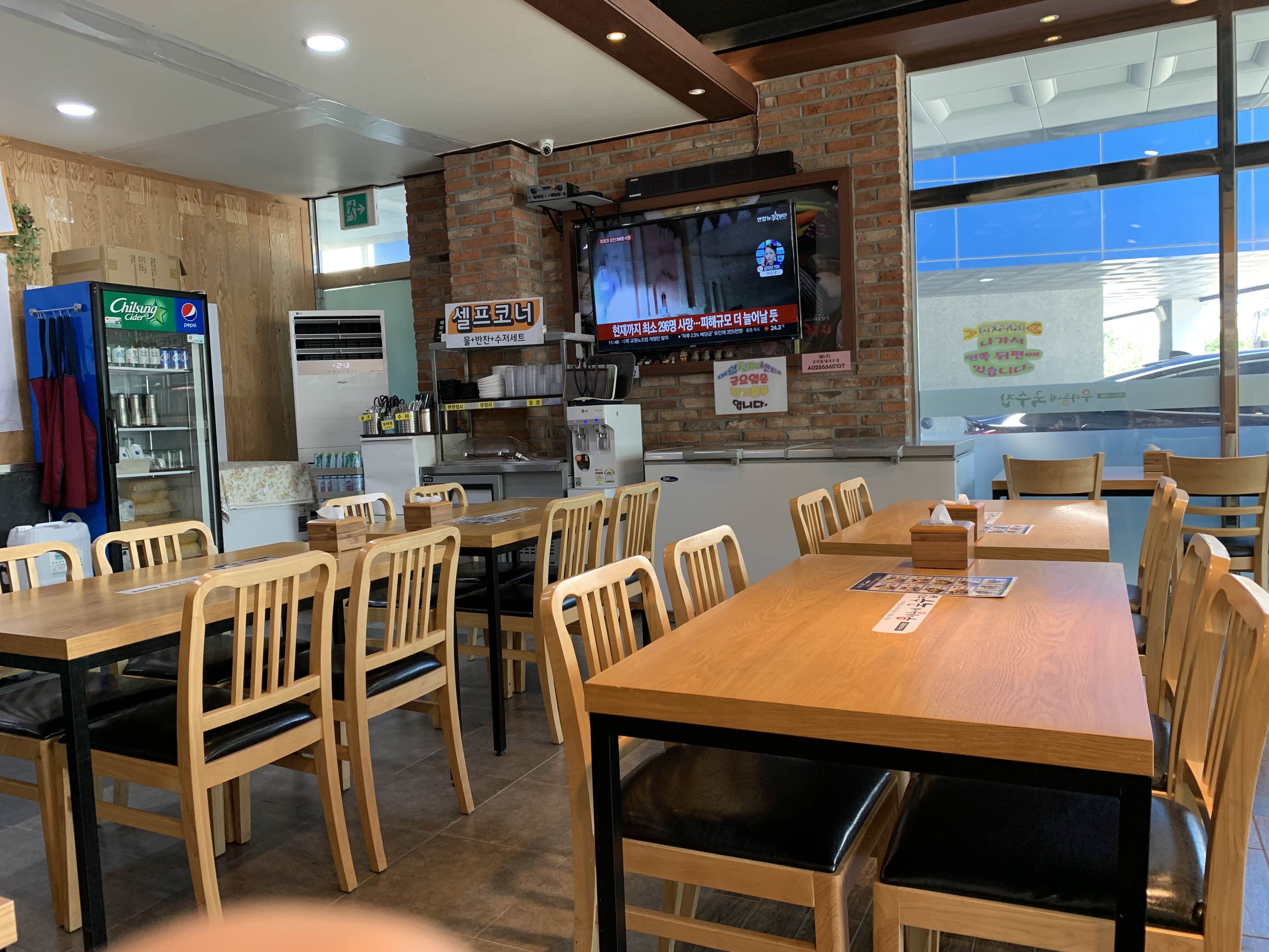 선불 결제로 주문 후 반찬과 식기류는 셀프코너를 이용해서 가져다 쓴다.