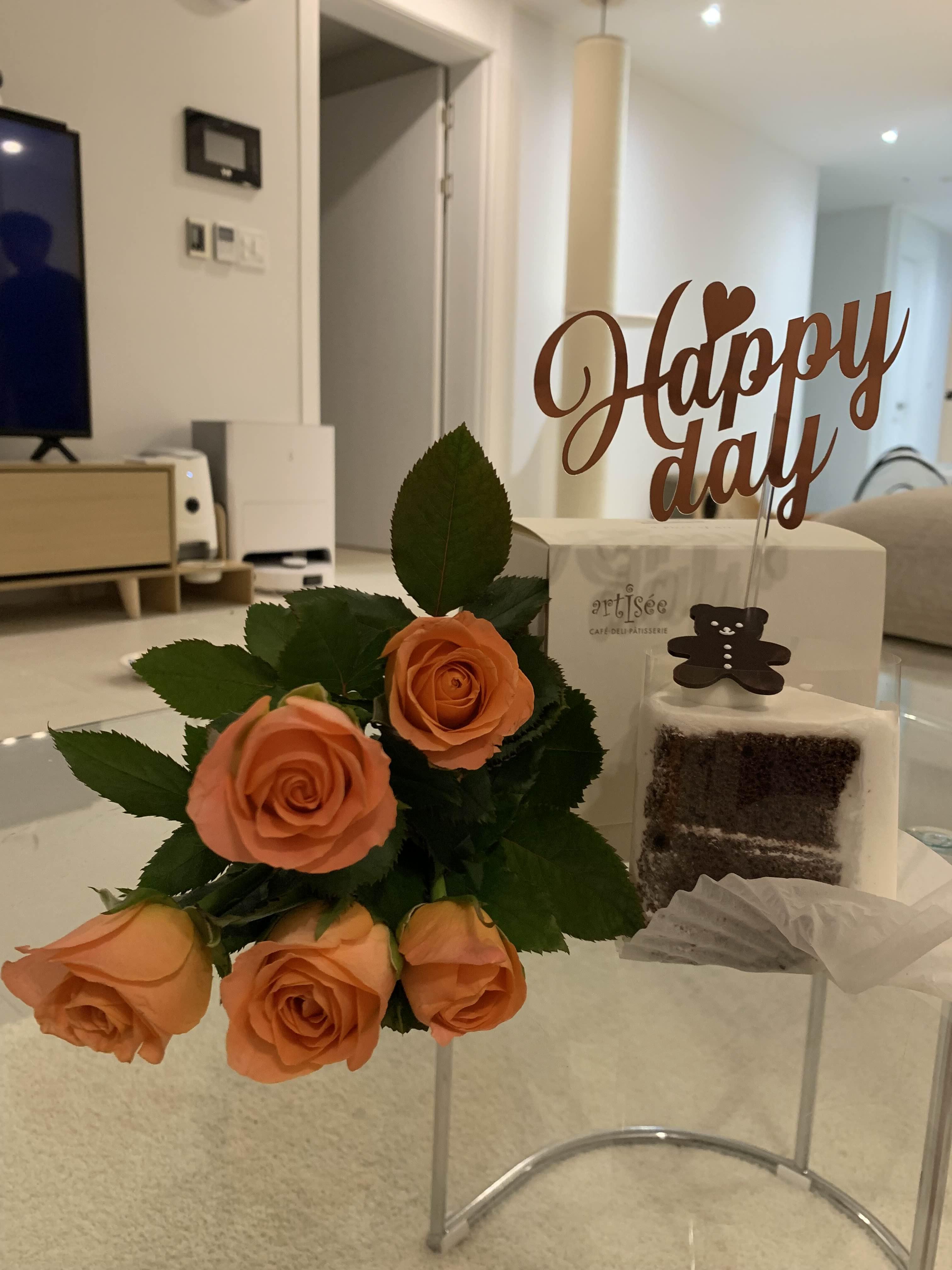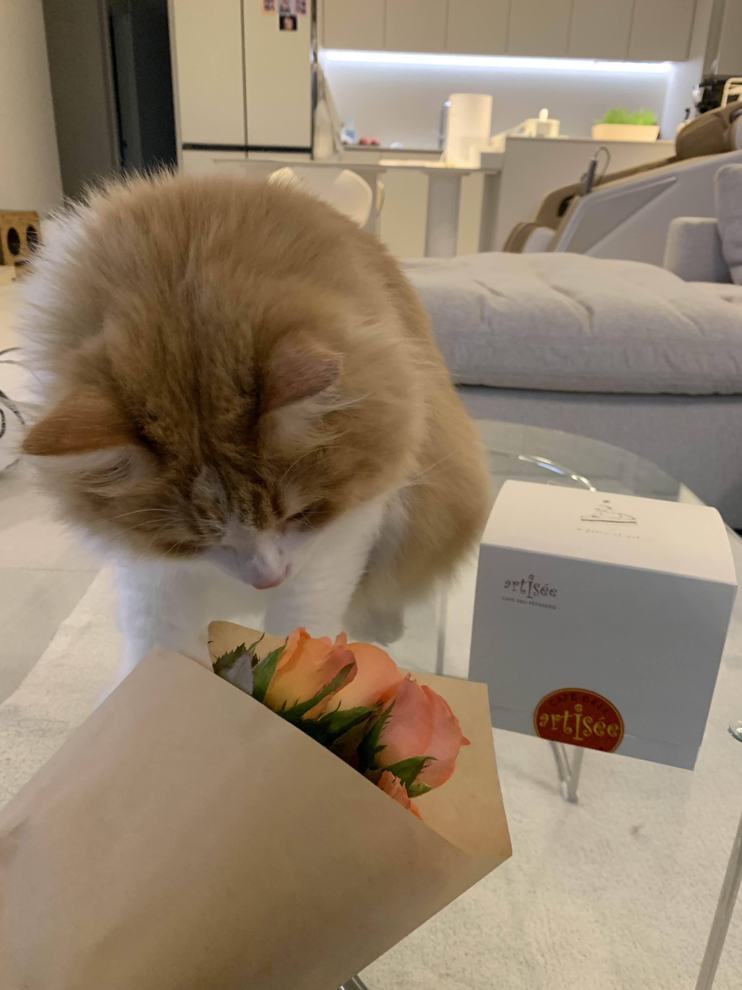 도착했다는데 계속 안오길래 왜 안 오지 왜 안 오지 했는데, 꽃다발과 케이크를 들고 퇴근을 했다.