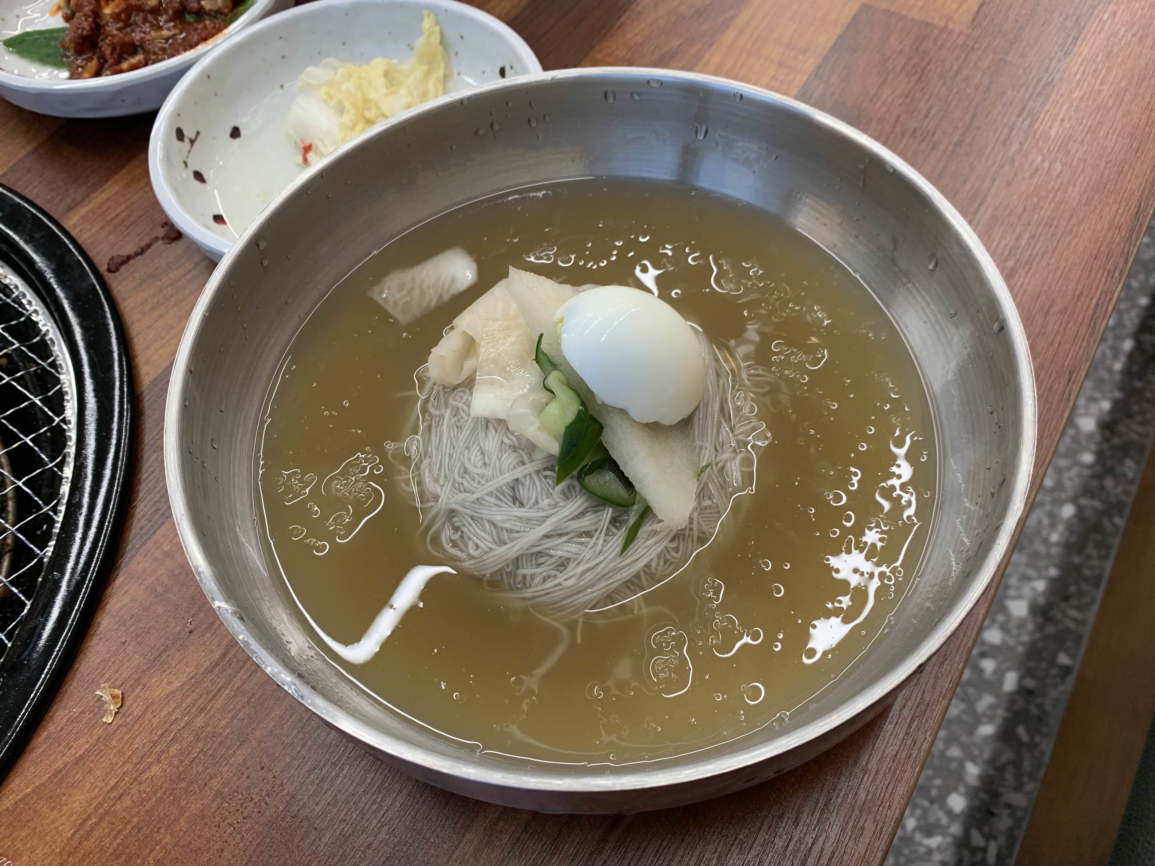 돼지갈비에는 물냉면이라는 오빠의 초이스로 물냉면을 시켰다.