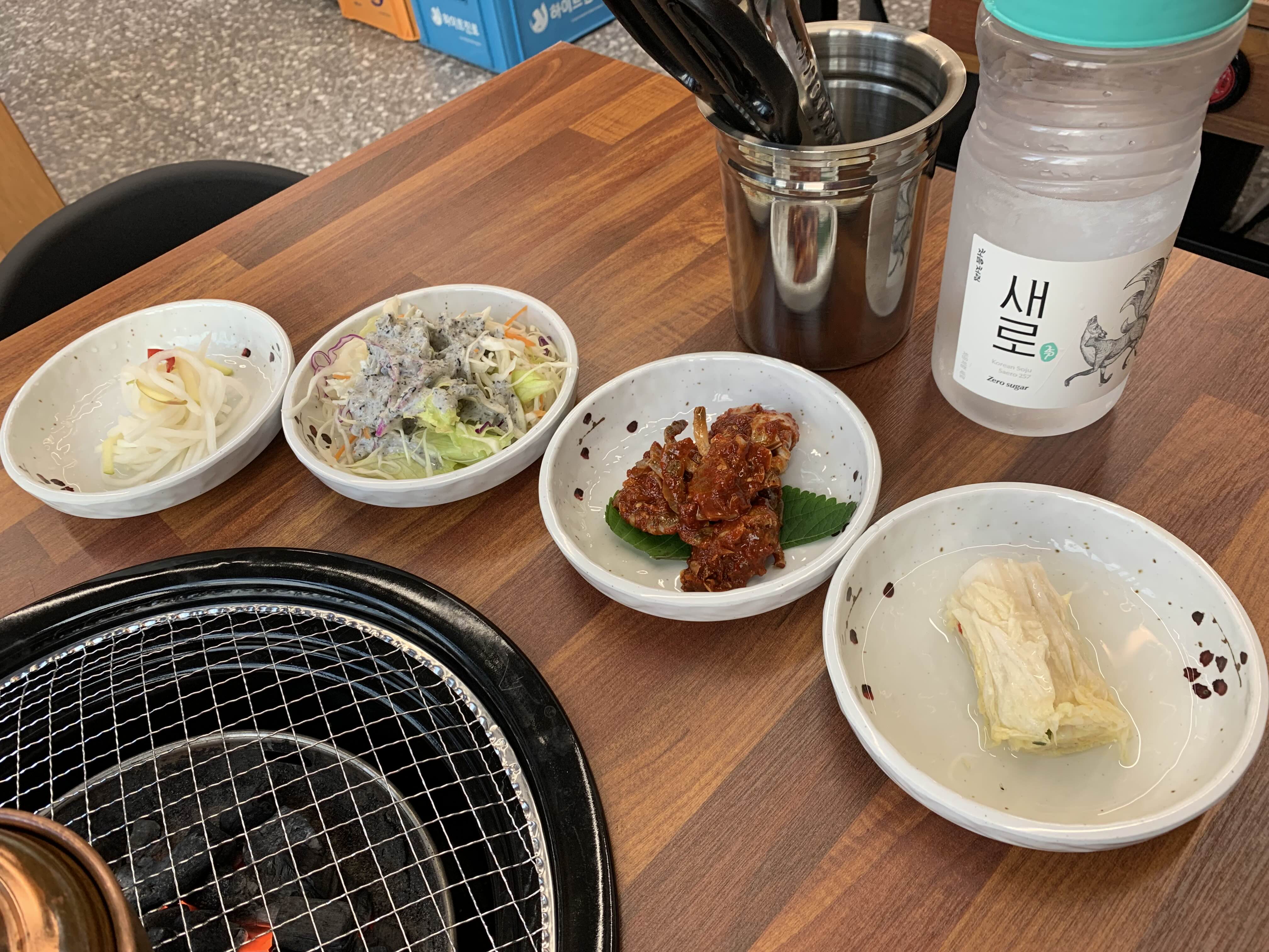 기본 찬들이 셋팅되고, 야채 종류의 반찬들은 셀프바를 이용하면 된다고 안내해주셨다.