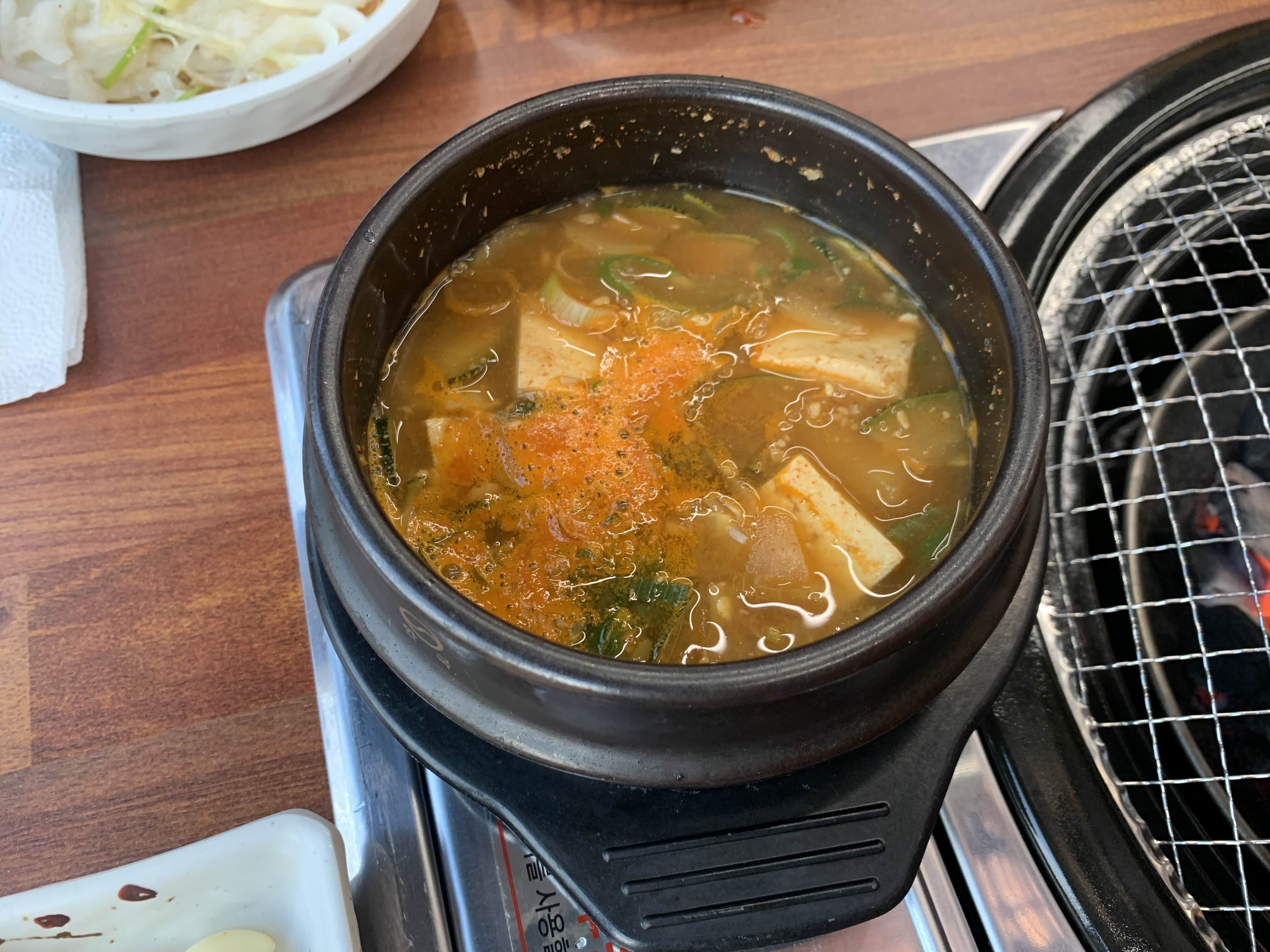 기본으로 나오는 된장찌개, 공기밥이랑 짝꿍이다.